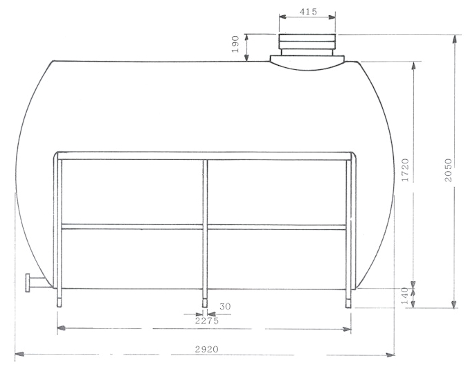 Ausführugsbeispiel für ein Untergestell Lieferbar ist auch eine transportfähige Metallstruktur (Bauart ähnlich SUN 1900-3000). Damit wird dieser Tank zum Transportbehälter mit 6000 l Fassungsvermögen (ohne UN-Zulassung)! |